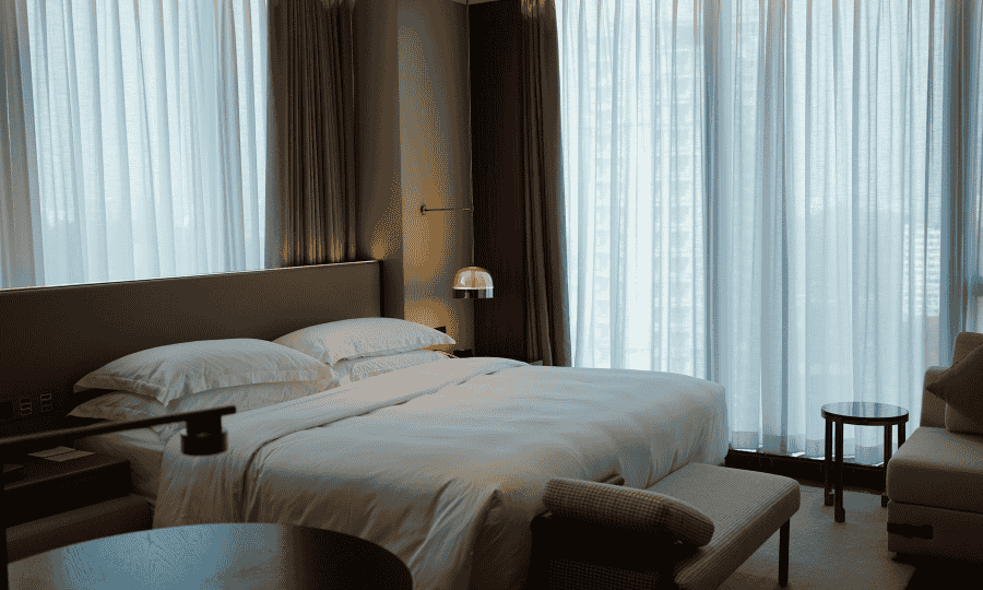 The centerpiece of the Luxe Loft is its king-size bed, dressed in high-quality linens, ensuring a restful night’s sleep. Adjacent to the bed is a comfortable sitting area with plush seating, providing a perfect space to relax or enjoy the stunning views through large windows. The room’s design incorporates elements of industrial chic with exposed brick walls and stylish lighting, creating an atmosphere that is both contemporary and inviting.